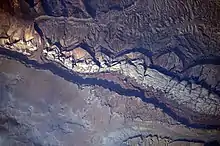 تشكل الأربعة معًا المنحدرات الدائرية الأورجوانية، والبرتقالية، والتلال، الذين أحيانًا ما يكونوا أعلى الجروف البيضاء بطول طية الواتربوكت باتجاه الغرب.[10]