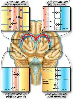 ![]() الحاجز الدموي الدماغي وحاجز الدم-السائل النخاعي | |