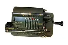 الحاسوب الميكانيكي هو جهاز حاسوب مبني حصرا بمكونات ميكانيكية كمقابض والمسننات وغيرها.[1][2][3] ولا وجود لأي مكونات الكترونية.