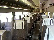 تشتمل التصميمات الداخلية للحافلات على العديد من الميزات غير الموجودة في الحافلات المخصصة للوسط الحضري