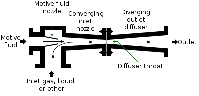 الحاقن والمحقن والقذاف والضاغط الحراري نوع من أنواع المضخات يستغل أنبوب فينتوري ليحول الطاقة الضغطية لمائع متحرك إلى طاقة سرعية تخلق منطقة ضغط منخفض لسحب مائع الشفط والآمتزاج مع المائع المتحرك.[1][2][3] وعندما يمر المائع الممتزج من حنجرة الحاقن فإنه يتمدد وتتقلص سرعته فيزداد ضغطه وبذلك فإن الطاقة السرعية تعود لتصبح طاقة ضغطية. يمكن للمائع المتحرك أن يكون سائلا أو غازا أو بخارا كما يمكن لمائع الشفط أن يكون سائلا أو غازا أو بخار.