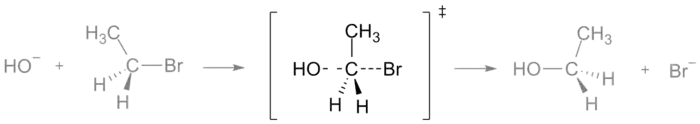 يرمز للحالة الانتقالية في التفاعلات الكيميائية بالرمز ‡ كما في المثال: