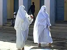 الحايك الوهراني وطريقة لبسه حيث تكشف النسوة وجوههن.