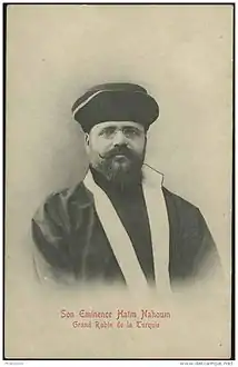 حايم نحوم أفندي (1873 - 1960)[2] الحاخام الأكبر لليهود في مصر منذ تعيينه في هذا المنصب بمرسوم ملكي صدر في 2 مارس 1925 وحتي وفاته في 13 نوفمبر 1960، تم تعيينه عضوا في مجمع اللغة العربية بمرسوم ملكي آخر في 13 ديسمبر 1932.[3]