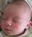 ![]() طفل مصاب بحب الشباب الوليدي في الوجه وخصوصا في الجبهة. طفل مصاب بحب الشباب الوليدي في الوجه وخصوصا في الجبهة. | |