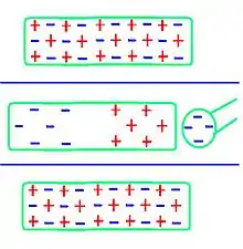 ان الوضع الطبيعي للمادة ان تحتوي على عدد متساوي من الشحنات الموجبة والسالبة، لذا نقول ان الجسم غير مشحون أو ان شحنته الكلية تساوي صفر كما في الشكل المجاور، وعندما يقترب جسم مشحون من المادة الموصلة (الحديد مثلا) فإنها تؤثر بقوة تجاذب مع الشحنات المختلفة عنها وتنافر مع الشحنات المشابهة، وعندما نُبعد الجسم المشحون عن قطعة الحديد مثلا فإن الشحنات تستعيد فيها توزيعها الطبيعي مرة أخرى، ونستطيع تسميتها بأنها قطعة حديد متعادلة.