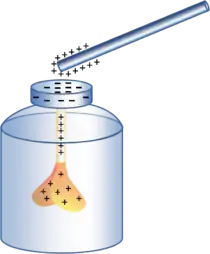 3-في اخر خطوة نقوم بإبعاد السلك والجسم الموصل فتتوزع الشحنات الموجبة على الجسم بالكامل وعندها يكون الجسم قد شحن بشحنة موجبة باستخدام الحث. و يلاحظ الشحنة التي شحنة بها قطعة المادة الموصلة كانت مخالفة للشحنة الموجودة على الجسم المشحون، لذا نستنتج انه لشحن جسم موصل بشحنة موجبة فإننا نقرب منه جسم سالب الشحنة والعكس بالعكس.