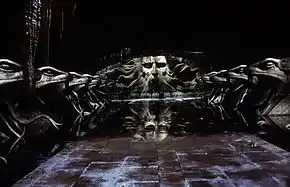 في آخر الحجرة يوجد تمثال ضخم لسالازار سيلذرين، يؤوي بداخله ثعبان الباسيليسك الضخم والمستخدم لقتل مولودي العامة من الطلاب.