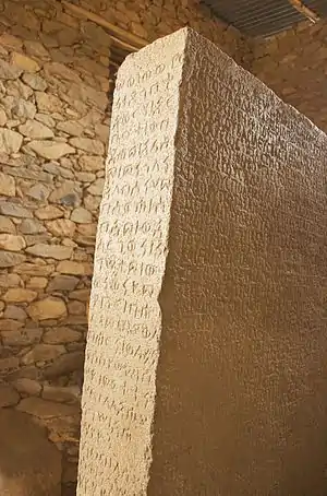 حجر عيزانا هو شاهد تذكاري لعيزانا ملك مملكة أكسوم القديمة. يوثق الشاهد التذكاري: تحول الملك عيزانا إلى المسيحية متأثرًا بمعلمه القديس فرومينتيوس، كما وثق الشاهد التذكاري غزو الملك للمناطق المجاورة في القرن الأفريقي، بما في ذلك أهم انتصارته التغلب على ميروي عاصمة مملكة كوش.