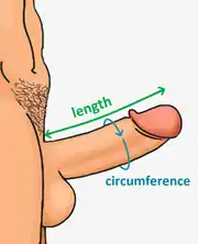 | صورة تظهر كيفية قياس طول ومحيط القضيب. |
