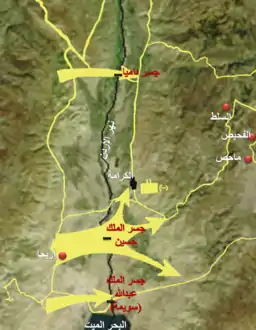 - صورة جوية لوقع جسر الملك عبد الله على نهر الأردن، جوجل نسخة محفوظة 2021-03-04 على موقع واي باك مشين.