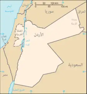 | فلسطين التاريخية | 335 | نهر اليرموك، نهر الأردن، البحر الميت، وادي عربة، الباقورة، الحمّة، المغطس، خليج العقبة | منها 97 كم مع الضفة الغربية، 238 كم مع إسرائيل.(معلومة 1) |