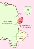 الحدود مع فلسطين التاريخية، وتشمل الضفة الغربية وإسرائيل (حدود مع أراضٍ مُحتلة أو محدودة الاعتراف دوليًا).