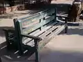 المقاعد الخشبية الخضراء التي تتميز بها الحديقة