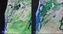 منذ تشغيل سد دياما على نهر السنغال عام 1988، لاحظ الخبراء انخافض مستوى المياه وزيارة حلاوة المياه وزيادة الإطماء. شكّلت هذه التغيّرات خطراً على الحياة الحيوانية والنباتية في الحديقة. تبدو صور الأقمار الصناعية التي وفراتها ناسا عام 1979 قبل بناء السد، وصور من عام 1999 تعطي أدلة على التأثير الكبير للنظام البيئي في المنطقة.