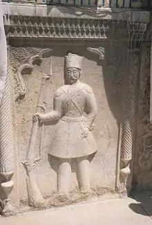 منحوتة لجندي قاجاري على احد جدران القصر