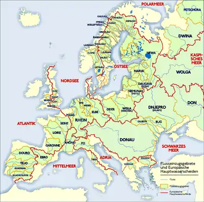 الحواجز المائية الرئيسية في أوروبا بالخط الأحمر