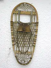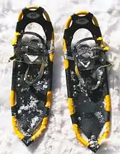 حذاء الثلج هو حذاء مُخصص يُمكِّن الشخص من السير فوق الثلج، دون أن يغطس فيه.[1][2][3] وهذا ممكن لأن حذاء الثلج، يوزع وزن المرء على مساحة كبيرة. ومعظم أحذية الثلج يبلغ طولها 90 سم على الأقل، ويتراوح عرضها ما بين 30سم و46سم. والشكل التقليدي يكون مصنوع من إطار خشبي خفيف ومثنية على هيئة شكل بيضِوي طويل. ويتم شد سيور من جلد الحيوان عبر الإطار. وعند السير بأحذية الثلج يحرك مرتديها قدميه، بحيث تتزحلق أحذية الثلج بطول سطح الثلج. ويعطي مرتدي أحذية الثلج حركة باتجاه الخارج مع كل خطوة.
