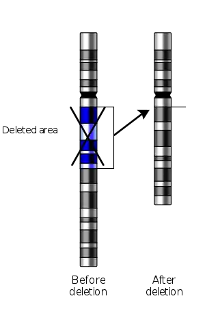 اصغر عملية حذف هي حذف زوج قاعدي واحد يحدث خلال تكوين "قالب الدنا"، يتبعها حدوث خطأ في الدنا المتكون الجديد.[2][3][4] وقد يحدث الحذف بسبب أخطاء في انقسام الكروموسومات خلال عملية الانقسام المنصف ؛ وقد تسبب أمراضا وراثية خطيرة. الحذوفات التي لا تحدث بحذف ثلاثة أو أكثر من القواعد قد تتسبب في طفرة تحسن من صفات الجيل الجديد وتحسن مقدرته على الحياة.