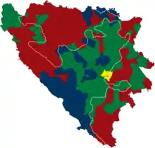 في أول انتخابات متعددة الأحزاب في البوسنة والهرسك في نوفمبر 1990 تم الإدلاء بالأصوات إلى حد كبير وفقا للعرق مما أدى إلى نجاح حزب العمل الديمقراطي البوسني والحزب الديمقراطي الصربي والاتحاد الكرواتي الديمقراطي.[37]