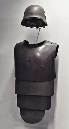 - الألمان : بدء الألمان إصدار درع من السيليكون والنيكل لقلة من الجنود أواخر سنة 1916، هذا الدرع له اسم Sappenpanzer جاء الدرع بنوعين 9 كغ و11 كغ وكان يستطيع إيقاف شظايا صغيرة ورصاص لكن من مسافات كبيرة بعد أن تبطئ الرصاصة، كانت مرهقة عند الهجوم، نسخة مطورة صدرت سنة 1918 وأصدر منها 500000 حلة.