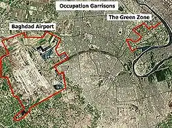 بعد وقت قصير من الغزو، أنشأ التحالف متعدد الجنسيات سلطة الائتلاف المؤقتة ومقرها في المنطقة الخضراء، وهي حكومة انتقالية في العراق حتى إنشاء حكومة ديمقراطية. وفقا لقرار مجلس الأمن رقم 1483 (الصادر في 22 مايو 2003) وقوانين الحرب، فإن سلطة الائتلاف المؤقتة تخول لنفسها السيطرة على السلطات التنفيذية، التشريعية والقضائية على مدى فترة إدارتها ابتداءاً من تاريخ إنشائها في 21 أبريل 2003 حتى تاريخ حلها في 28 يونيو 2004.