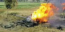 وفقا لوزارة الدفاع الأمريكية، نهب 250,000 طن قصير (230,000 طن) من أصل 650,000 طن قصير (590,000 طن) من المتفجرات، مما يوفر مصدرا هاما للذخيرة للتمرد العراقي. انتهت مرحلة الغزو عندما سقطت تكريت، مسقط رأس صدام حسين، حيث انخفضت المقاومة ضد فرقة العمل طرابلس من قوات المارينز الأمريكية.