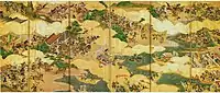 رسم يصوّر أحداث تمرد هيجي [الإنجليزية]، الذي صعدت فيه سلطة قبيلة تايرا السياسية مقابل خسارة كبيرة لميناموتو، ويعتبر من أهم أسباب حدوث حرب غينبيه لاحقاً.