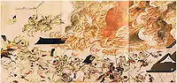 مشهد تصويري لمعركة دان نو أورا، المعركة البحرية الأخيرة في حرب غينبيه وهزمت فيها قبيلة تايرا هزيمة شديدة.