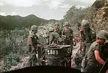 حرب فيتنام (الفيتنامية: Chiến tranh Việt Nam) ، والمعروفة أيضًا باسم الحرب الهندوصينية الثانية،[58] وفي فيتنام يطلق عليها حرب المقاومة ضد أمريكا (الفيتنامية: Kháng chiến chống Mỹ) أو ببساطة الحرب الأمريكية، وهو نزاع وقع في فيتنام ولاوس وكمبوديا ابتداءً من 1 نوفمبر 1955،[أ 1] حتى سقوط سايغون في 30 أبريل 1975. وهي ثاني الحروب الهندوصينية وكانت أطراف الحرب الرسمية فيتنام الشمالية وفيتنام الجنوبية. تلقى الجيش الفيتنامي الشمالي الدعم من الاتحاد السوفيتي، والصين،[28] وحلفاء شيوعيين آخرين، أما الجيش الفيتنامي الجنوبي فقد تلقى الدعم من الولايات المتحدة، وكوريا الجنوبية، وأستراليا، وتايلاند وحلفاء آخرين مناهضين للشيوعية.[59] يرى بعض الأمريكيين أن هذه الحرب كانت بمثابة حرب بالوكالة في حقبة الحرب الباردة.[60] وغالبية الأمريكيين يعتقدون أن الحرب كانت غير اخلاقية وغير مبررة.[61]