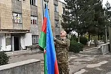 في 29 أكتوبر أصدر الرئيس علييف مرسومًا بشأن تشكيل مكاتب قيادة مؤقتة في المناطق التي سيطرت عليها القوات الأذربيجانية خلال النزاع. وفقًا للمرسوم فقد تم تعيين القادة من قبل وزارة الداخلية، لكن يتعين عليهم التنسيق مع الهيئات التنفيذية الأخرى للحكومة، ومنها وزارة الدفاع وجهاز حدود الدولة وجهاز أمن الدولة ووكالة مكافحة الألغام.[170]