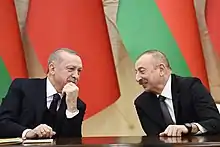 حرب مرتفعات قرة باغ 2020 [ملحوظة 5] أسماها الأذريون باسم عملية القبضة الحديدية (بالأذرية: Dəmir Yumruq əməliyyatı)،[68] هو نزاع مسلح بين أذربيجان بدعم من تركيا، وجمهورية أرتساخ التي نصبت نفسها في منطقة مرتفعات قرة باغ المُتنازع عليها والأراضي المحيطة بها مع أرمينيا. كان هذا التصعيد الأخير للنزاع الذي لم يتم حله على منطقة يعترف بها العالم بأنها جزء من أذربيجان، ولكن حكمتها أرتساخ لفترة من الوقت، وهي دولة انفصالية ذات أغلبية عرقية أرمنية.[ملحوظة 6]