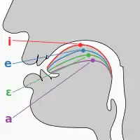 - الموضع العمودي للسان، والذي يحدد ما يعرف بالارتفاع.
