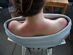 ![]() مرأة تعاني من حروق على الكتف والعنق. مرأة تعاني من حروق على الكتف والعنق. | |