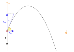 إذا افترضنا أن المقذوف قد أطلق بسرعة بدائية . والتي يمكن التعبير عنها بمجموع مركبتي السرعة الرأسية والأفقية كما يلي: