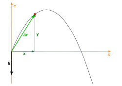 المعادلة السابقة هي معادلات قطع مكافئ، لذا فالمسار الذي يتحرك فيه المقذوف هو قطع مكافئ بمحور رأسي.