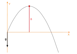 أما الزمن اللازم حتى يصل المقذوف إلى أقصى ارتفاع (h) فيساوي: