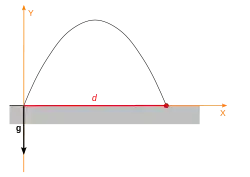 وبعد انتهاء الرحلة، يعود المقذوف للمحور الأفقي (محور-x)، أي تكون y=0.