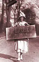 كان حزب السلام للمرأة (الذي تم تنظيمه في عام 1915 بقيادة المصلح الشهير جين أدامز) من ضمن المجموعات العديدة التي احتجت على الحرب، إلى جانب كنائس السلام التقليدية، وكذلك اللجنة الدولية للنساء من أجل السلام الدائم (International Committee of Women for Permanent Peace ICWPP) (نظمت أيضًا في عام 1915)،[20] والاتحاد الأمريكي ضد العسكرة، زمالة المصالحة، ولجنة خدمة الأصدقاء الأمريكية.[21] كانت جانيت رانكين، أول امرأة تُنتخب للكونجرس، مدافعة عنيفة أخرى عن السلام، والشخص الوحيد الذي صوت بـ "لا" لدخول أمريكا إلى الحربين العالميتين.