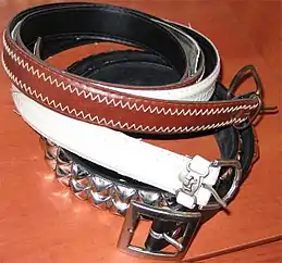 - حزام الأدوات، يتميز بوجود إضافات تمكن مستخدمه من تعليق وربط الأدوات به. مثل أحزمة رجال الشرطة والفنيين.