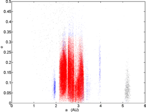 كويكبات الحزام الرئيسي تقسم إلى ثلاث مناطق، استناداً على أبرز ثغرات كيركوود: