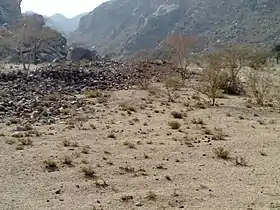 ![]() صورة لحرزة يظهر فيها أثر لبناء مندثر | |