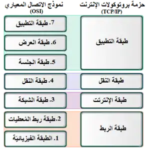 مقارنة بين نموذج الإنترنت (TCP/IP) ونموذج الاتصال المعياريّ (OSI)