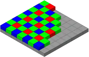 الحساس لايمكنه التعرف على الألوان وكل ما يستطيع فعله هو التعرف على شدة الضوء الساقط نسبيا ولذلك يصنع قناع من الألوان بنفس مستوي دقة الترانزيستور الواحد يوضع امامه (في مسار الضوء) فلا يمرر لكل وحدة الا لون واحد فقط وعن طريق خوارزميات خاصة يتم جمع قيم شدة الاضائة من الوحدات المجاورة لإعادة تمثيل اللون الاصلى.