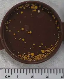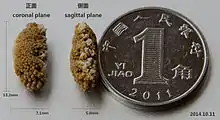 ![]() صورة ملونة لحصاة كلوية طولها 8 مللي مترات. حصاة كلوية بقطر قدره 8 ميليمتر أي ما يعادل 0.3 إنش | |