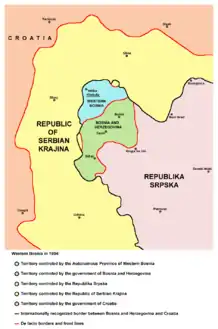 استولت القوات الحكومية البوسنية على أراضي البوسنة الغربية في عام 1994 ، ولكن تم طردهم في وقت لاحق من ذلك العام بمساعدة كبيرة من الصرب، وأعيد تأسيس مقاطعة غرب البوسنة المتمتعة بالحكم الذاتي.