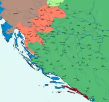 من 1520s اكتسب التقدم العثماني في كرواتيا وتيرة. انتخب النبلاء الكروات فرديناند الأول من هابسبورغ في برلمان سيتين في عام 1527 كملك جديد ، لكن التوغلات العثمانية المستمرة أدت إلى خسارة كبيرة في الأراضي. في عام 1537 ، كان سقوط كليس يعني خسارة آخر معقل كرواتي في جنوب البلاد. في الأربعينيات من القرن التاسع عشر ، تقدم العثمانيون إلى سلافونيا وفي العقود الثلاثة القادمة عبر غرب البوسنة في اتجاه زغرب. [1] بحلول أواخر القرن السادس عشر ، فقدت كرواتيا ثلثي منطقة ما قبل الحرب وأكثر من نصف السكان. تم تخفيضه إلى 16،800 كيلومتر مربع من الأراضي الحرة ويبلغ عدد سكانها حوالي 400،000. وقد تمت الإشارة إلى الأرض المتبقية باسم " بقايا بقايا مملكة كرواتيا الشهيرة ذات مرة " ( (باللاتينية: reliquiae reliquiarum olim magni et inclyti regni Croatiae) ). [2] [3]