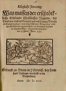 حصار بيهاتش ( (بالكرواتية: Opsada Bihaća) ) كانت محاصرة مدينة بيهاتش ، مملكة كرواتيا داخل مملكة هابسبورغ الملكية ، والاستيلاء عليها من قبل الإمبراطورية العثمانية في يونيو حزيران 1592. مع وصول تيلي حسن باشا إلى بيليربي من البوسنة إياليت في عام 1591 ، انتهت فترة سلام بين الإمبراطور رودولف الثاني والسلطان مراد الثالث وشنت الجيوش العثمانية هجومًا على كرواتيا. كانت بيهاتش ، وهي مدينة شبه معزولة على نهر أونا اللتي صدت الهجوم العثماني في عام 1585 ، أحد الأهداف الأولى. استخدم توماس إردودي ، بان كرواتيا ، الموارد والجنود المتاحين لحماية المدن الحدودية ، لكن العثمانيين تمكنوا من أخذ عدة حصون أصغر في عام 1591. مع تقدم الهجوم ، أقر البرلمان الكرواتي قانونًا بشأن الانتفاضة العامة في البلاد في 5 يناير كانون الثاني 1592.