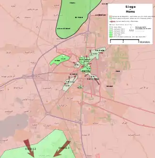 |CitationClass=تم تجاهله (مساعدة) - "Syria: Homs military attacks continue, say activists". BBC News. مؤرشف من الأصل في 18 أبريل 2019. اطلع عليه بتاريخ 25 أكتوبر 2014. الوسيط