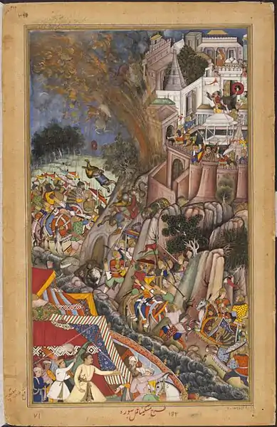 - أكبرنامه لأبو الفضل بن مبارك"قُتل ما يقرب من 30000 رجل." نسخة محفوظة 14 أغسطس 2017 على موقع واي باك مشين.